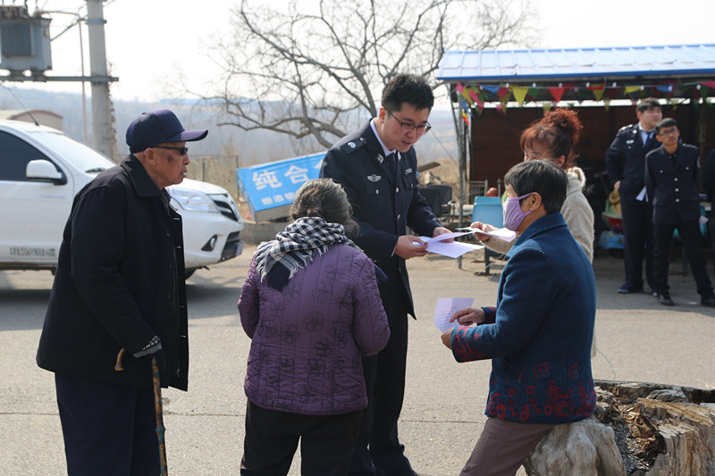 工作人员给村民发放宣传单,呼吁他们爱护水环境,保护水资源