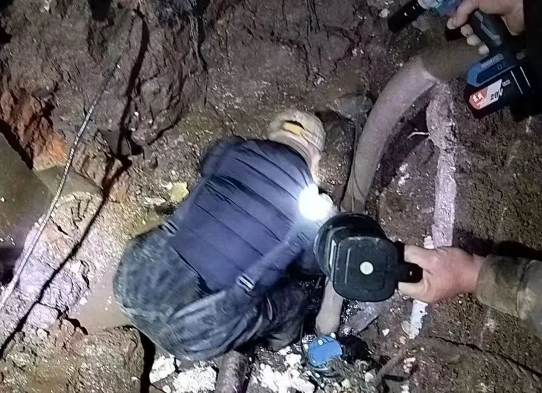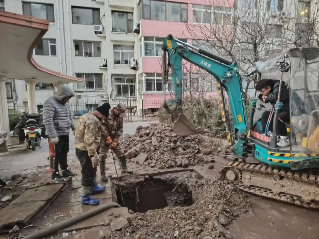2025年1月1日凌晨0:00,伴随着古塔公园跨年钟声的响起,西街里9号楼下的爆管抢修排查工作仍在紧张进行中。