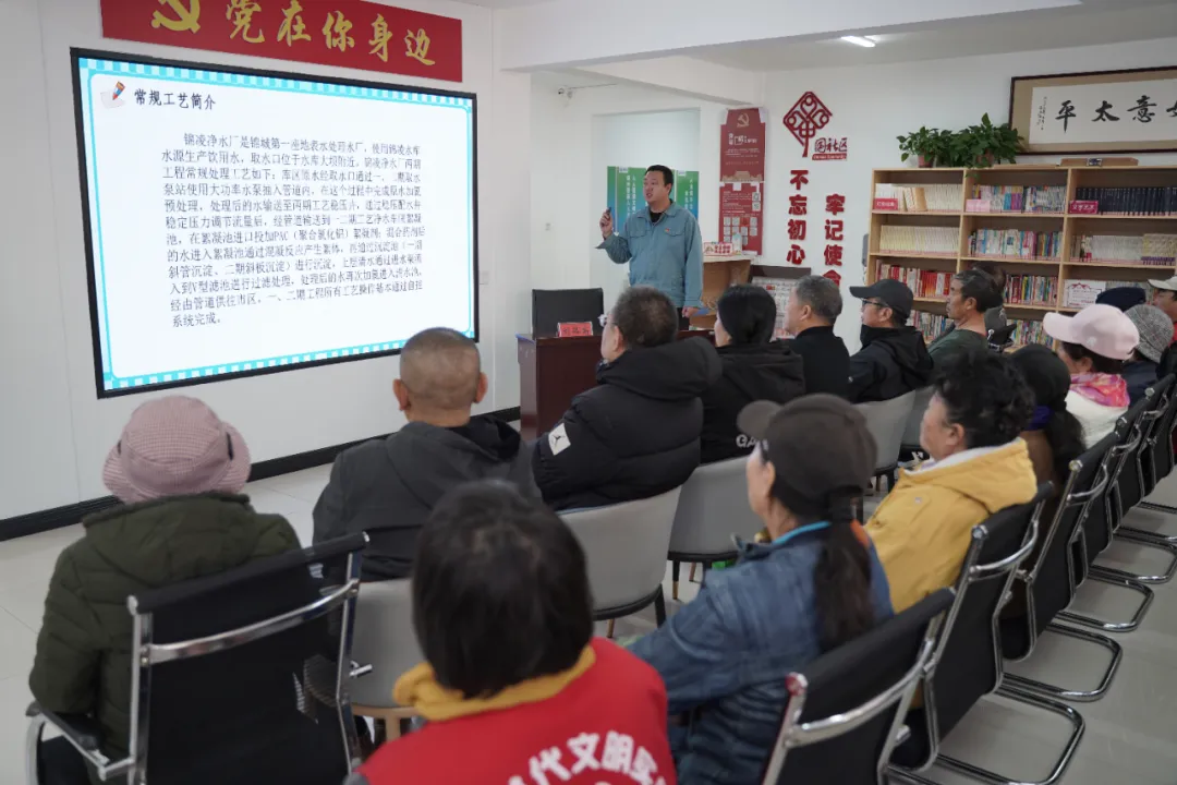 紧接着,锦凌净水厂副厂长刘路禹以“一滴水的净化之旅”为主题,系统讲解原水取水到出水的核心净水工艺。结合锦州水源地特点,他特别强调:“水质安全容不得半点马虎,我们通过24小时智能监测与近百项指标严控,确保每一滴水都符合国家标准。”严谨的科普讲解既彰显科技力量,又贴近生活实际,现场居民纷纷感叹:“原来‘拧开水龙头’的背后,凝聚着如此多的匠心与坚守!”